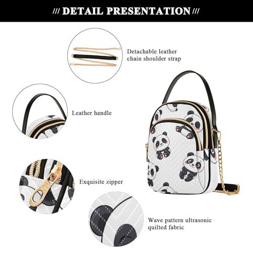 Cute Cartoon Pandas Black White Womens Shoulder Purse Quilted Phone Handbag Small Chain Purse Cute Zipper Crossbody Bowler Bag 4