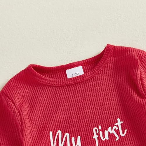 Newborn Baby Boy Girl Christmas Outfit Long Sleeve Waffle Knit My First Christmas Footie Romper Jumpsuit Xmas Clothes 6