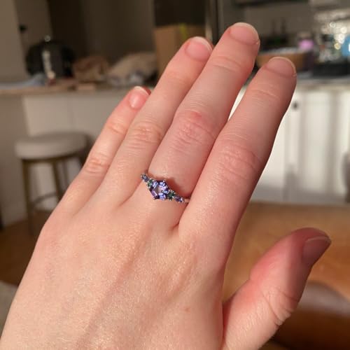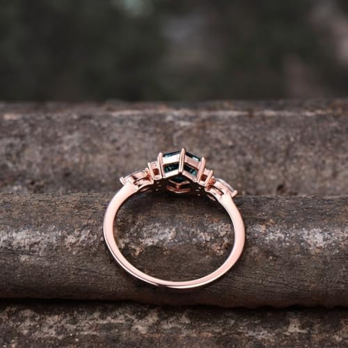 Hexagon Cut Alexandrite Ring – Vintage Rose Gold Dainty Engagement Ring for Women – Marquise & Emerald Cut Gemstone Ring – distinctive Promise Ring Gift