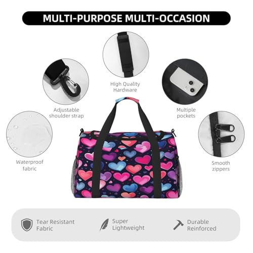 sought-after ! Travel Duffel Bag For Men Women, Colorful Hearts appreciate Pattern Carry On Sport Gym Bag With Shoulder Strap Lightweight Waterproof Weekender Bag Overnight Bag