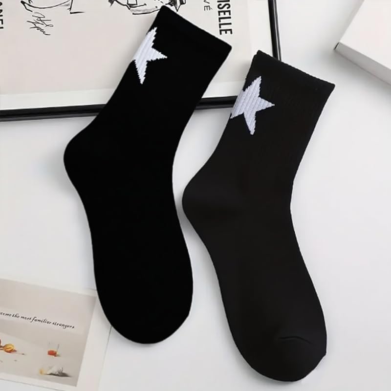 sought-after ! 2 Pairs Men's And Women's Star Pattern Crew Socks, Breathable Blend, Mid-Calf Basketball Socks With Geometric Design