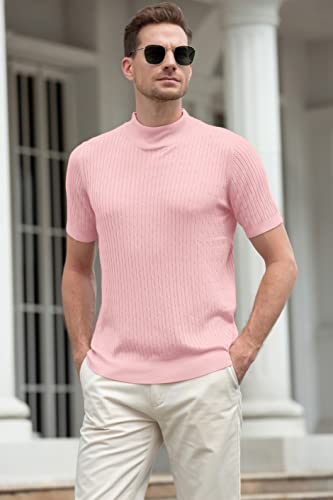 QZH.DUAO Men's Casual Slim Fit Short Sleeve Mock Turtleneck Knit Pullover Sweater, Pink, US Large 4