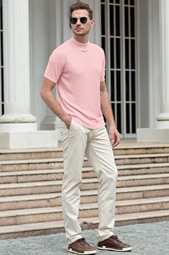 HOT ! QZH.DUAO Men's Casual Slim Fit Short Sleeve Mock Turtleneck Knit Pullover Sweater, Pink, US Large