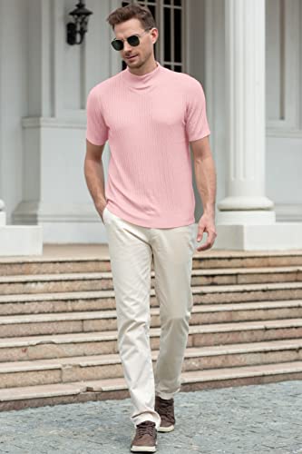 QZH.DUAO Men's Casual Slim Fit Short Sleeve Mock Turtleneck Knit Pullover Sweater, Pink, US Large 2