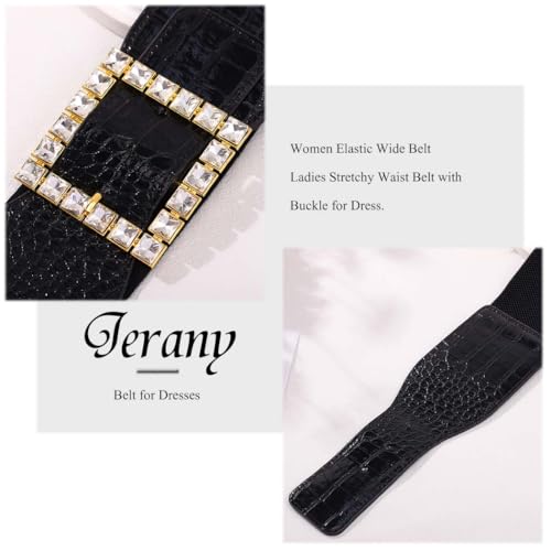 More information about Women Elastic Wide Waist Belt Rhinestone Square Buckle Belt for Dresses Stretchy Wide Belt