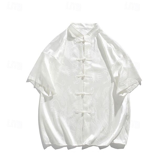 Highlights [Fabric] : Crafted from premium polyester, this men’s shirt offers a lightweight and breathable feel, making it ideal for summer wear. The smooth texture of the fabric ensures both comfort and style, making it suitable for warm-weather outings. [Fit] : Featuring a relaxed fit, this shirt provides ease of movement while maintaining a polished look. Its casual yet refined silhouette makes it versatile for various occasions, from leisurely vacations to everyday streetwear. [Design Highlights] : The shirt boasts a classic Mandarin collar and traditional frog buttons, emphasizing its Chinese heritage and adding to its cultural allure. The plain color pattern enhances its simplicity while the short-sleeved design is perfect for staying cool and comfortable in hot weather. [Occasions] : This shirt is perfect for holiday vacations, casual daily wear, or any relaxed outdoor gatherings. Whether you’re strolling through the streets or enjoying a laid-back day at the beach, it offers a stylish and comfortable option for your wardrobe. [Size Range] : Available in a wide range of sizes from M to 5XL, this shirt is designed to cater to a variety of body types, ensuring a comfortable fit for everyone.