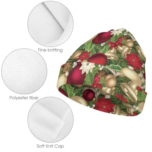 More information about Blooming Poinsettia Holly Berry Christmas Pattern Kids Beanie Hat for for Girls Boys Children Cap Winter Knitted Chemo Cancer Headwear Accessories Gifts Decoration Black