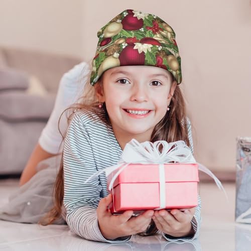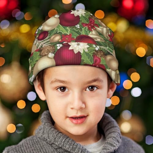 Blooming Poinsettia Holly Berry Christmas Pattern Kids Beanie Hat for for Girls Boys Children Cap Winter Knitted Chemo Cancer Headwear Accessories Gifts Decoration Black 6