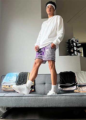 BOOMLEMON Men's Retro Paisley Shorts Mesh Print Casual Beach Shorts Athletic Gym Workout Running Short Pants 7