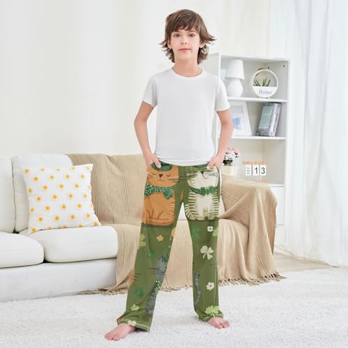 Lucky Clovers Cat Boys Long Pants Soft Trousers Elastic Waist Kids Lounge Bottoms with Pockets S-XL 4