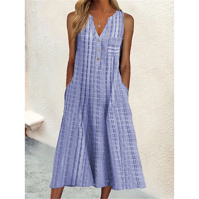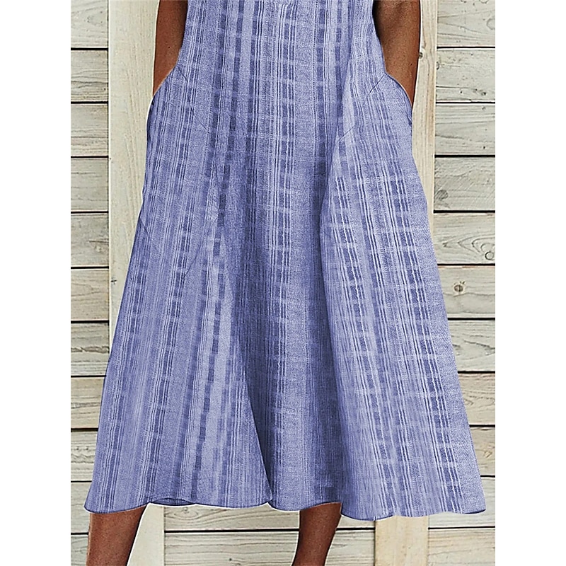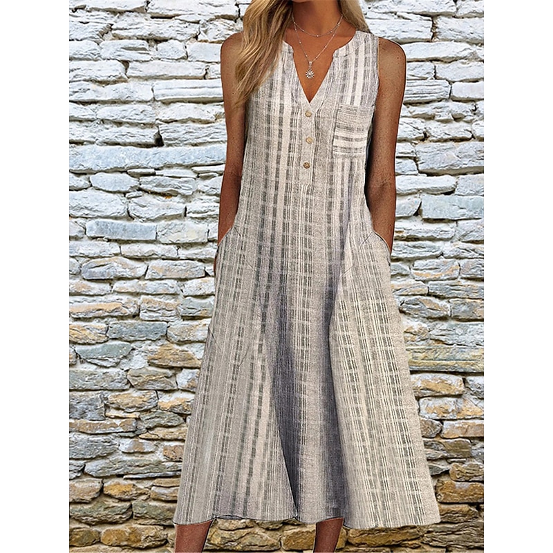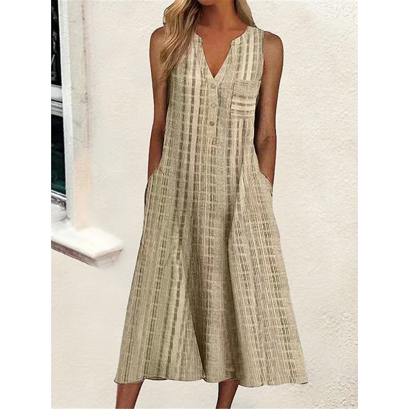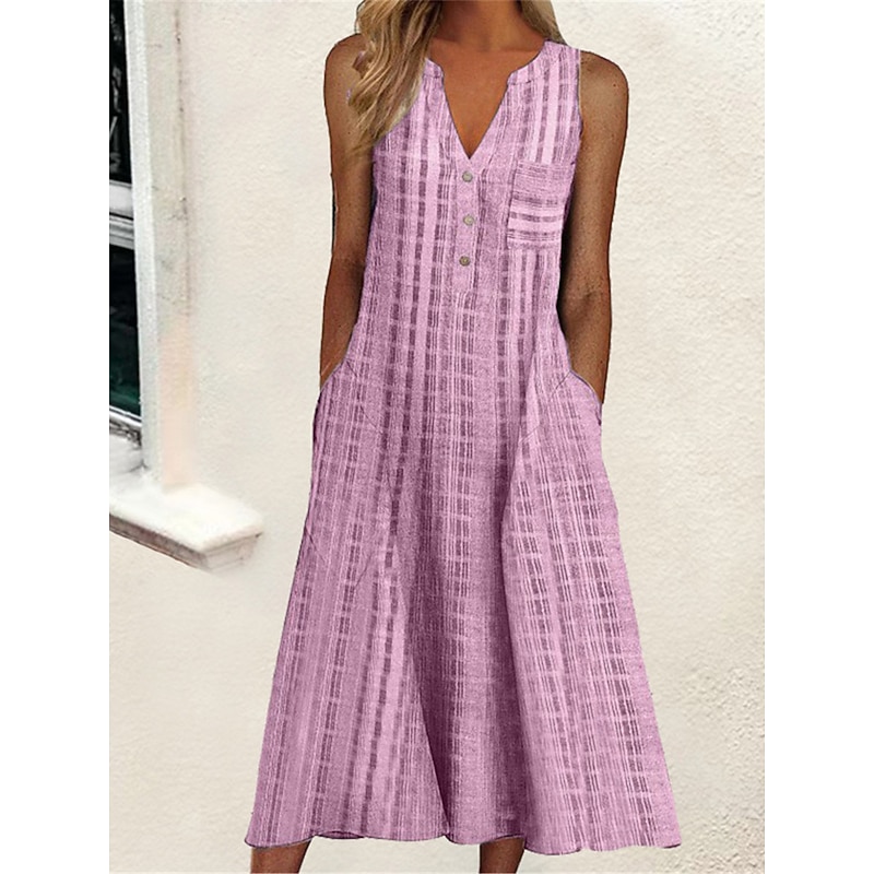Women's Midi Dress Cotton Linen Dresses Tank Dress Summer Dress Print Dress Active Fashion Outdoor Daily Weekend Loose Fit Plaid Sleeveless V Neck Black Pink Blue Purple Summer Spring