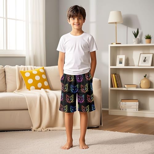 Colored Neon Cat Pajama Shorts Summer Lounge Pajama Bottoms Elastic Waist Pjs Pants for 6-14 Years 4