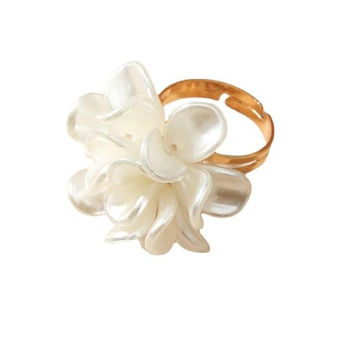 sought-after ! Rrdaily White Acrylic Petal Flower Open Ring for Women,Dainty Statement Floral Adjustable Camellia Ring,Sweet Wedding Anniversary Prom Jewelry Gifts