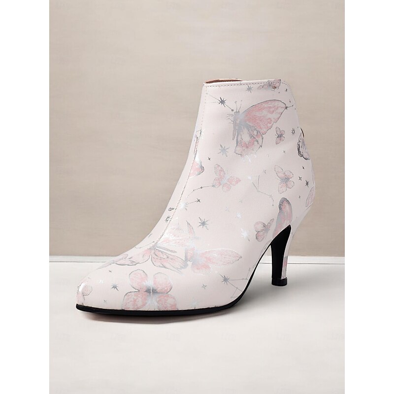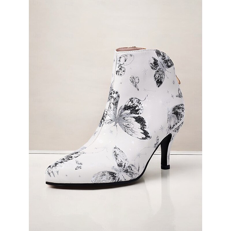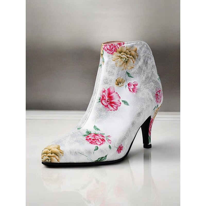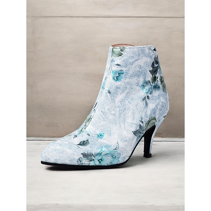 Highlights [Fabric] These women's ankle boots are crafted from premium PU material, providing a high-quality, leather-like texture that balances elegance and durability. The boots feature a textile lining for added comfort and warmth during seasonal transitions. [Silhouette] With a sophisticated pointed toe and a sleek stiletto heel, these ankle boots offer an elegant silhouette that enhances femininity and provides a sleek, refined appearance suitable for both casual and formal attire. [Design Highlights] These boots showcase a vintage-inspired floral print with blue and green patterns set against a subtle white backdrop, adding a romantic touch. The design includes a convenient side zipper for easy wear and removal, and a stiletto heel for a touch of glamour. [Occasions] Perfect for formal events, parties, and work settings, these versatile boots can elevate any outfit. Whether for a professional meeting or a festive gathering, they provide a sleek and fashionable choice that adapts well to various occasions. [Size Notice] Available in a range of sizes from US5.5/EU35 to US10.5/EU42, these boots fit true to size. It is recommended to choose your regular size for a perfect fit. Perfect for everyday use. superior materials and excellent craftsmanship ensure long-lasting durability.