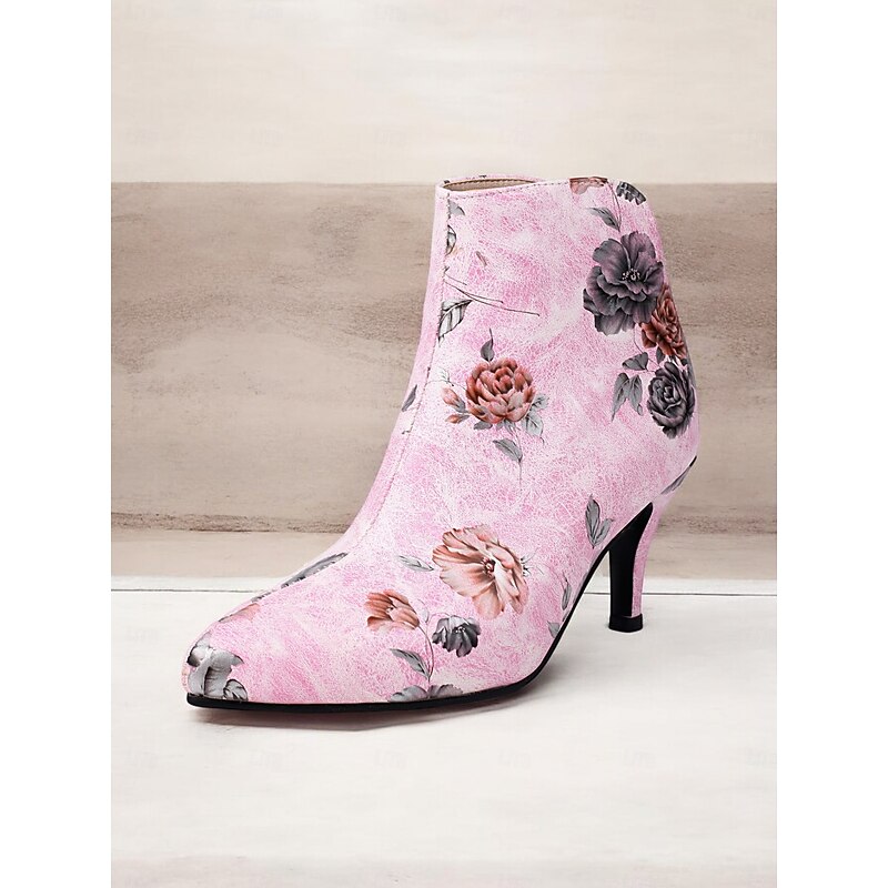 Women's Vintage Floral Print Ankle Boots with Pointed Toe and Stiletto Heel | Elegant High Heel Booties for Formal Events and Parties