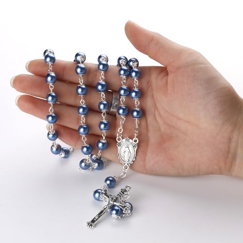 8mm Glass Pearl Beads Catholic Rosary Necklace for Men and Women with Flannel Bag