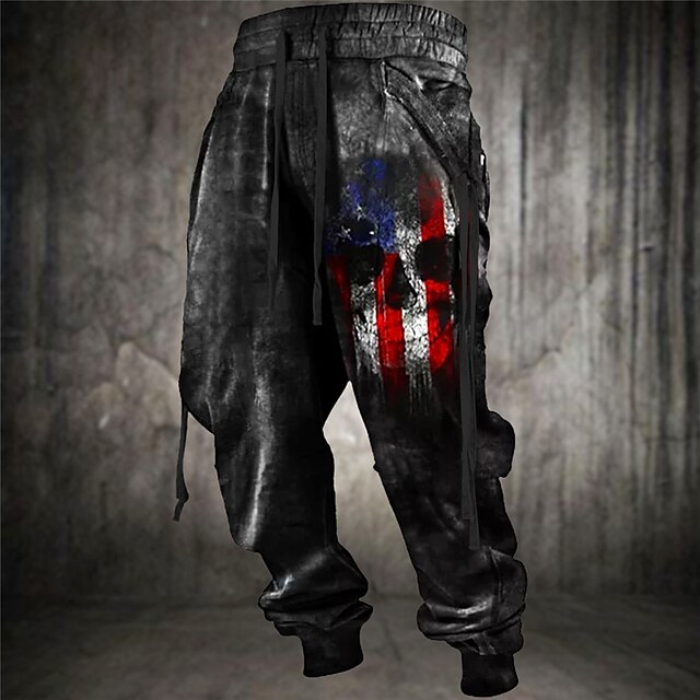 More information about Skull American Flag Punk Gothic Men's 3D Print Sweatpants Joggers Pants Trousers Outdoor Street Casual Daily Polyester Blue Brown Green S M L Mid Waist Elasticity Pants
