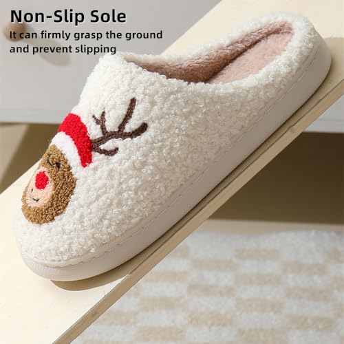 HOT ! Christmas Slippers for Women Men, Retro Soft Plush Warm Cushioned Lightweight Non-Slip House Slippers Cute Cartoon Santa Reindeer Slippers Slip-On Cozy Indoor Outdoor Slippers