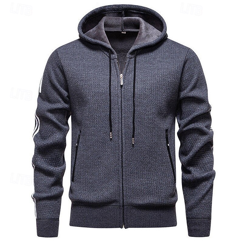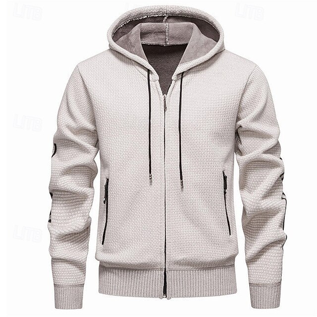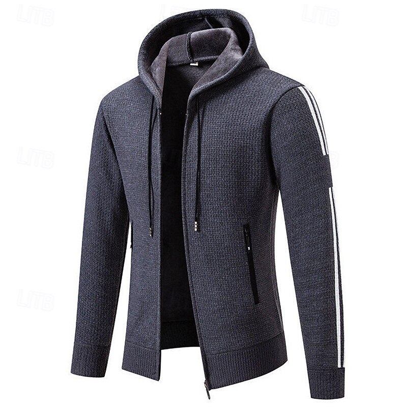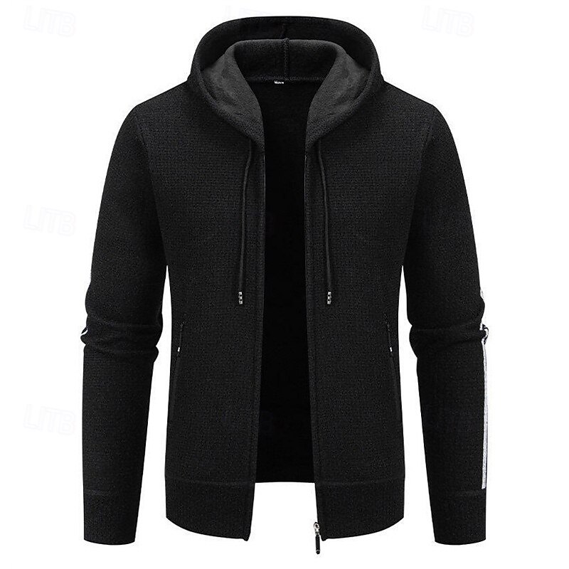 More information about Men's Cardigan Sweater Cropped Sweater Zip Sweater Knit Sweater Ribbed Knit Regular Tops Pocket Plain Hooded Fashion Classic Vacation Daily Wear Clothing Apparel Fall Winter Black Dark Gray S M L