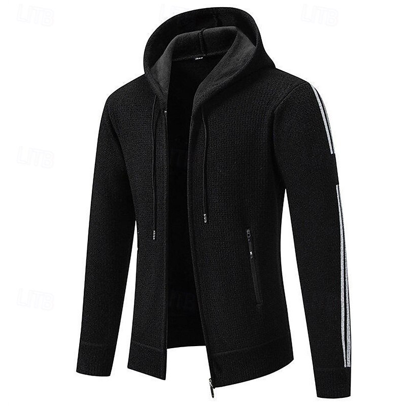 HOT ! Men's Cardigan Sweater Cropped Sweater Zip Sweater Knit Sweater Ribbed Knit Regular Tops Pocket Plain Hooded Fashion Classic Vacation Daily Wear Clothing Apparel Fall Winter Black Dark Gray S M L