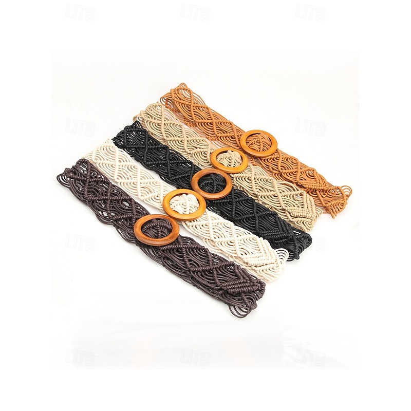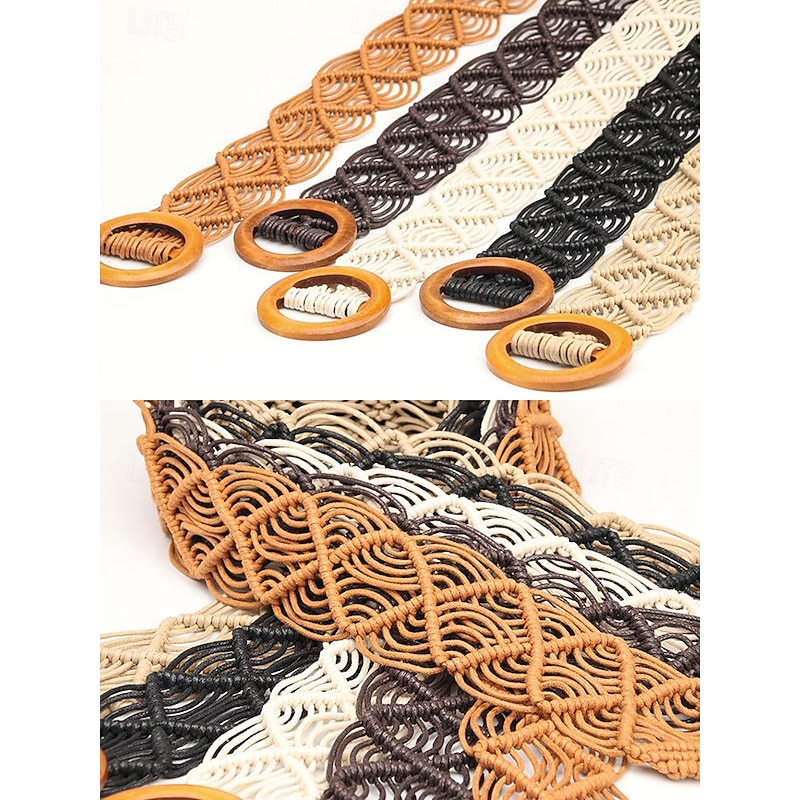 $11.99 - Boho Macrame Woven Belt for Women – Handmade Wide Waist Belt with Wooden Buckle, Vintage Chic Style for Dresses, Casual Outfits and Summer Beachwear 2025. Shop for cheap Women's Belt online? Buy at lightinthebox.com on sale today!