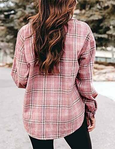 • Two chest pockets, button cuffs, curved hem, lapel collar, plaid jackets for women, womens plaid shacket button down wool blend fall flannel shirt jacket, shacket jacket women