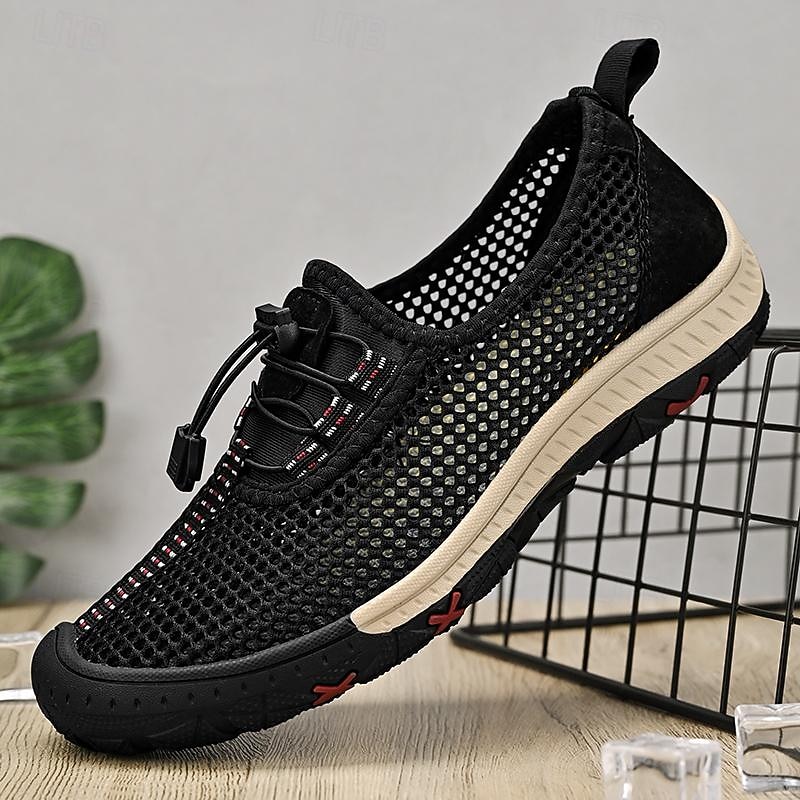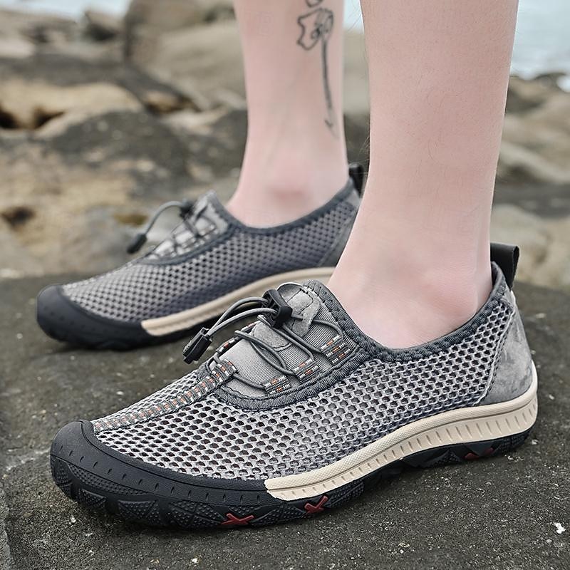 HOT ! Men's Breathable Mesh Outdoor Walking Shoes with Elastic Lace and Anti-Slip Sole, Lightweight Quick-Dry Sneakers for Hiking, Fishing and Summer Travel