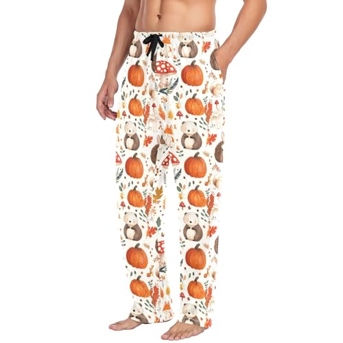 Mens Pajama Pants 100% Cotton, Mushrooms Fox Autumn Pumpkin Men's Flannel Pajama 7
