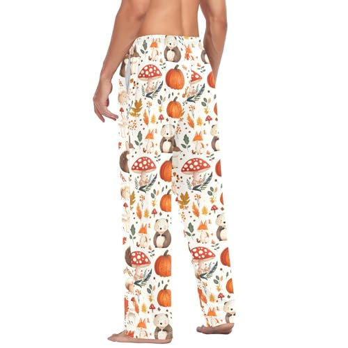Mens Pajama Pants 100% Cotton, Mushrooms Fox Autumn Pumpkin Men's Flannel Pajama 5