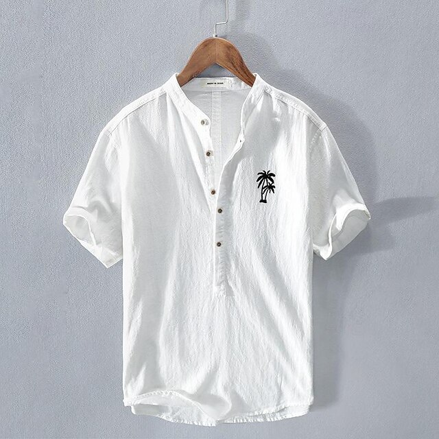 More information about Men's Shirt Linen Shirt Cotton Linen Shirt White Cotton Shirt Minimalist Aloha Shirt Chinese Collar Shirt Coconut Tree Vacation Street White Navy Blue Gray Light Blue Short Sleeve Band Collar Summer