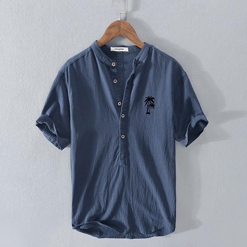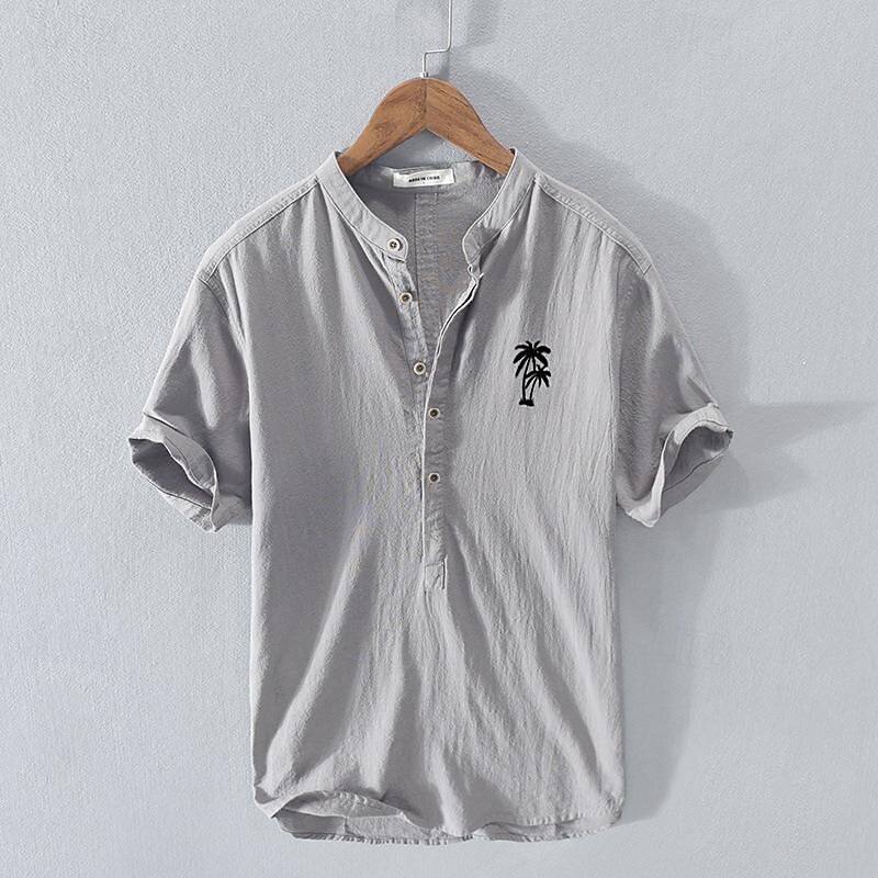 : This casual shirt features a relaxed fit with a short sleeve design, perfect for a laid-back summer vibe. The Henley style and band collar offer a versatile look that suits a variety of settings, from beach outings to city strolls.