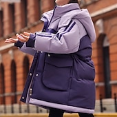 Kids Girls' Down Jacket Outdoor Jacket Puffer Jacket Color Block Fashion Waterproof Keep comfortable Windproof Outdoor Coat Outerwear 4-12 Years Fall Pink Purple Khaki
