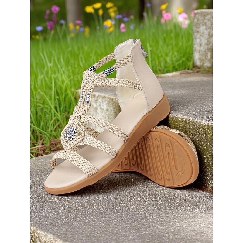 HOT ! Women's Braided Sandals with Gemstone Accents – Stylish Boho Sandals for Summer, Beach, and Casual Outings