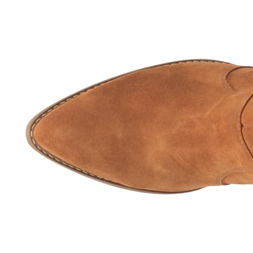 • Suede leather upper with studded accent straps and long fringe tassels, and a snip toe
