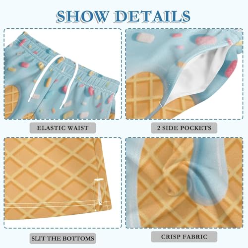 Boys Athletic Shorts Basketball Shorts Colorful Ice Cream Teens Hiking Gym Shorts with Pocket 7-15 Y 2