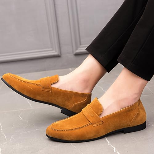 Sole material: RubberOuter material: SuedeClosure type: Pull-On【DESIGN FEATURES】: This men's loafer has a one-of-a-kind design, classic hand-sewn design, durable, impressive and fashionable, showing gentlemanly demeanor, and is a perfect choice for fashionable men's daily outings.【DURABLE MATERIAL】: Our men's slip-on loafers are made of high-quality suede material with a fine texture, and the upper is very durable and smooth, so it is easy to clean with a brush and other tools.【SUPER COMFORTABLE】: This men's Oxford shoe is made of rubber non-slip and wear-resistant sole, which is not only durable and wear-resistant, but also not easy to slip even on wet and slippery ground, allowing you to enjoy a comfortable wearing experience.【PERFECT GIFT】: This pair of business loafers is also a must-have item in men's wardrobe. Wearing this pair of shoes, you will stand out from the crowd, and this pair of shoes is also a great gift for all men, such as father, husband, son and boyfriend, etc.【APPLICABLE OCCASIONS】: Exquisite men's business casual shoes wear this pair of shoes, you will be in the office, anniversary, prom, party, wedding, graduation season, friends gathering and other occasions, I believe you will be the focus of attention. Perfect for everyday use. superior materials and excellent craftsmanship ensure long-lasting durability.
