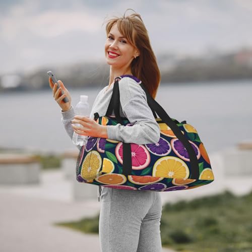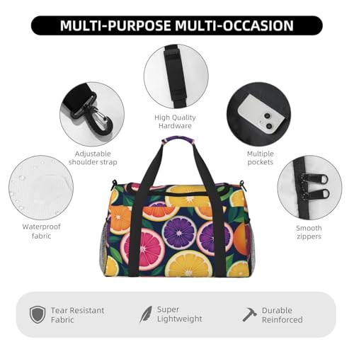 Citrus Fruit Print Travel Duffle Bag - Foldable Personal Item Travel Bag for Women & Men,Carry-On Convertible Crossbody Tote Bags with Adjustable Shoulder Strap & Pockets 13x10.2x19.7 in 1