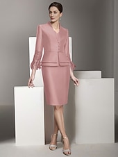 More information about Two Piece Sheath / Column Dress Suit Mother of the Bride Dress Elegant Vintage V Neck Knee Length Satin 3/4 Length Sleeve with Feather Beading Race Day Dress