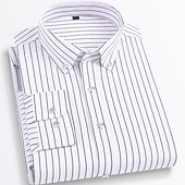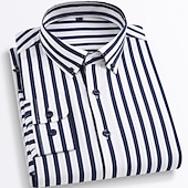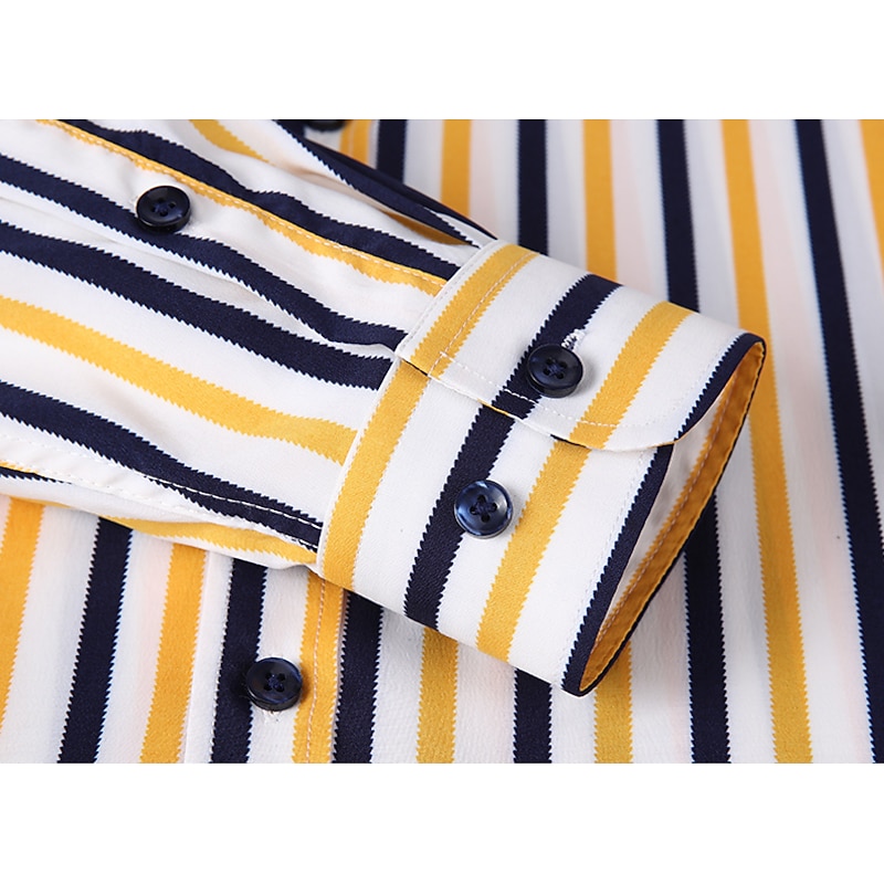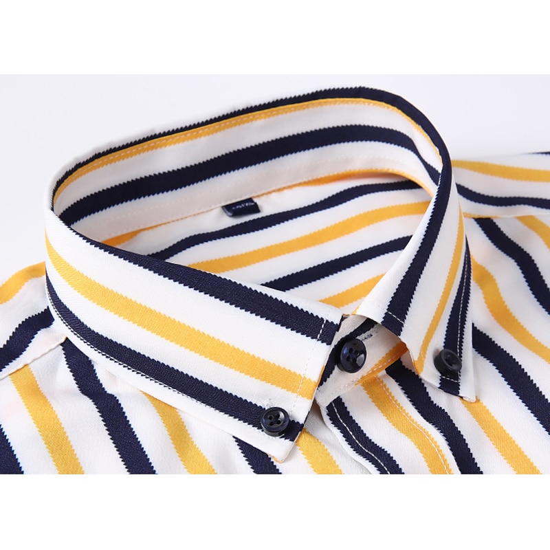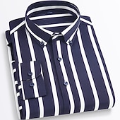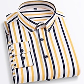 More information about Men's Dress Shirt Button Down Shirt Non Iron Shirt Striped Shirt Stretch Stripe Wedding Office & Career Black White Yellow Dark Navy Long Sleeve Shirt Collar All Seasons Clothing Apparel Print