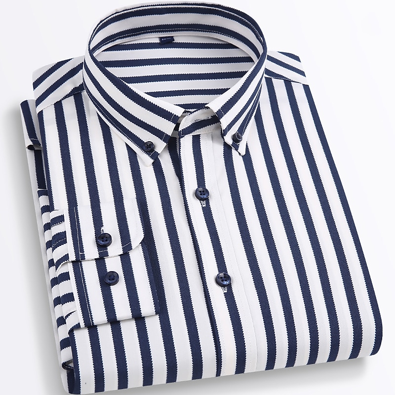Men's Dress Shirt Button Down Shirt Non Iron Shirt Striped Shirt Stretch Stripe Wedding Office & Career Black White Yellow Dark Navy Long Sleeve Shirt Collar All Seasons Clothing Apparel Print 1
