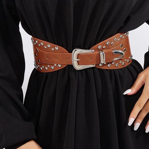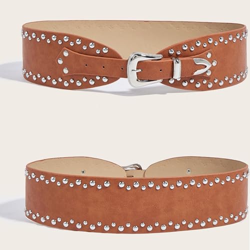 IZUS Women Country Belt Retro Cowgirl Waist Strap with Western Buckle 3.15in Wide Faux Leather Belts for Coat/Dress 5