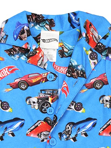 HOT ! Hot Wheels Racecar Toddler and Boys Flannel Coat Style Pajama Set (6, Blue)