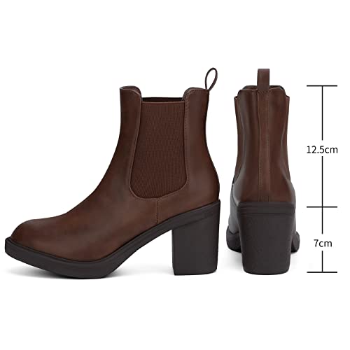MaxMuxun Women's Chelsea Ankle Boots with Heels Slip on Round Toe Platform Heeled Booties for Women