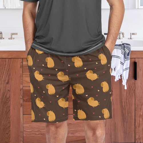 Men's Pajama Shorts Soft Comfy Casual Sleep Lounge Capybara Pj Bottom with Drawstring & Pockets 1