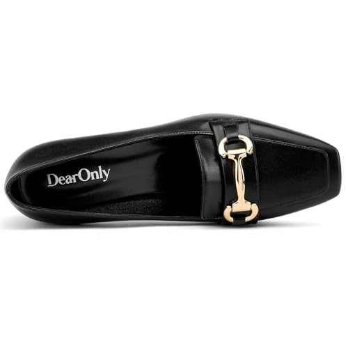 HOT ! DearOnly Heeled Loafers for Women Square Toe Chunky Block Mid Heel Pumps Slip-on Metal Chain Work Office Dress Shoes 2.8 Inches Heels