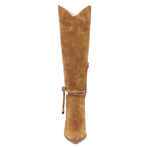 Yishaweiqi Suede Knee High Boots for Women Strap Side Zipper Fall Western Boots Pointed Toe Chunky Bloack Heel Boots 7