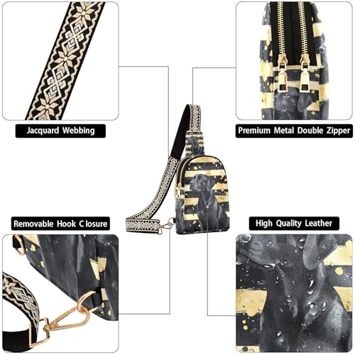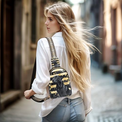 HOT ! KLL Trendy Black Dog Black and Gold Striped crossbody sling bag lightweight sling backpack for women for hiking