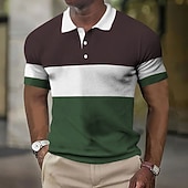More information about Men's Horizontal Stripes Rugby Polo Short Sleeve Polo Shirts Collared Shirts Business Casual School Formal Dailywear Business Buttons 3D Print Summer Dark Brown Dark Green Dark Blue