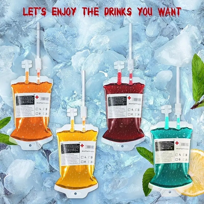 10pcs Blood Bags For Drinks Halloween Party Decorations Supplies Halloween Blood Bags Drink Pouches Reusable IV Bags Drink Vampire Accessories Nurse Graduation for Halloween 4