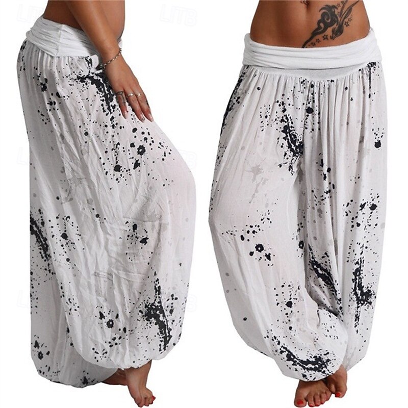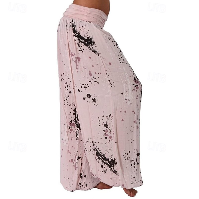 More information about Women's Pants Trousers Palazzo Pants Fashion Boho Full Length Mid Waist Print Elastic Waist Comfy Comfortable Micro-elastic Street Daily Wear Going out White Yellow Pink Army Green Summer Regular Fit